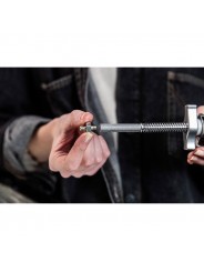 Mikro-Endklemme mit einem Öffnungsdurchmesser von 5 cm und einer maximalen Tragfähigkeit von 25 kg. Sie verfügt über eine feste Klemmbacke am Ende einer Gewindestange, die ideal für die Positionierung in engen Räumen ist, sowie über ein 1/4"-Innengewinde und einen Adapter von 1/4" auf 1/4"-Außengewinde für leichte Anwendungen. Der gerändelte Schaft ist ideal für die Montage im Kopf einer C-Stativhalterung, um Objekte wie Beleuchtungssteuerungen oder Stützen zu greifen.