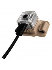Drei Halterungen sind im Lieferumfang enthalten: eine magnetische, eine gebogene für die Befestigung am Helm und eine mit dem MOLLE-System kompatible Halterung.