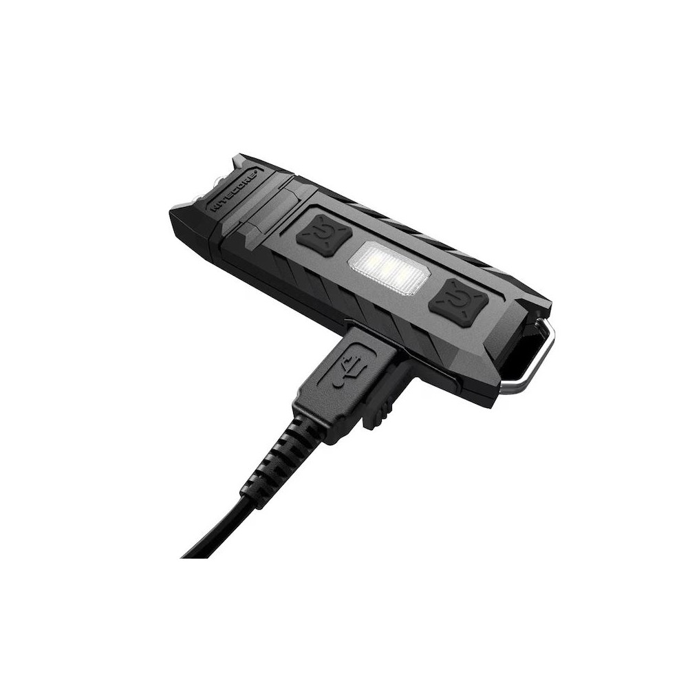 Nitecore Thumb hat einen eingebauten Lithium-Ionen-Akku, der über ein USB-Kabel aufgeladen wird. Die Leistung der Taschenlampe beträgt bis zu 45 Lumen und eine Reichweite von bis zu 24 Metern.