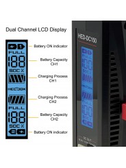 Außerdem verfügt sie überein großes und leicht ablesbares LCD-Display, das den Ladezustand der Akkus anzeigt.