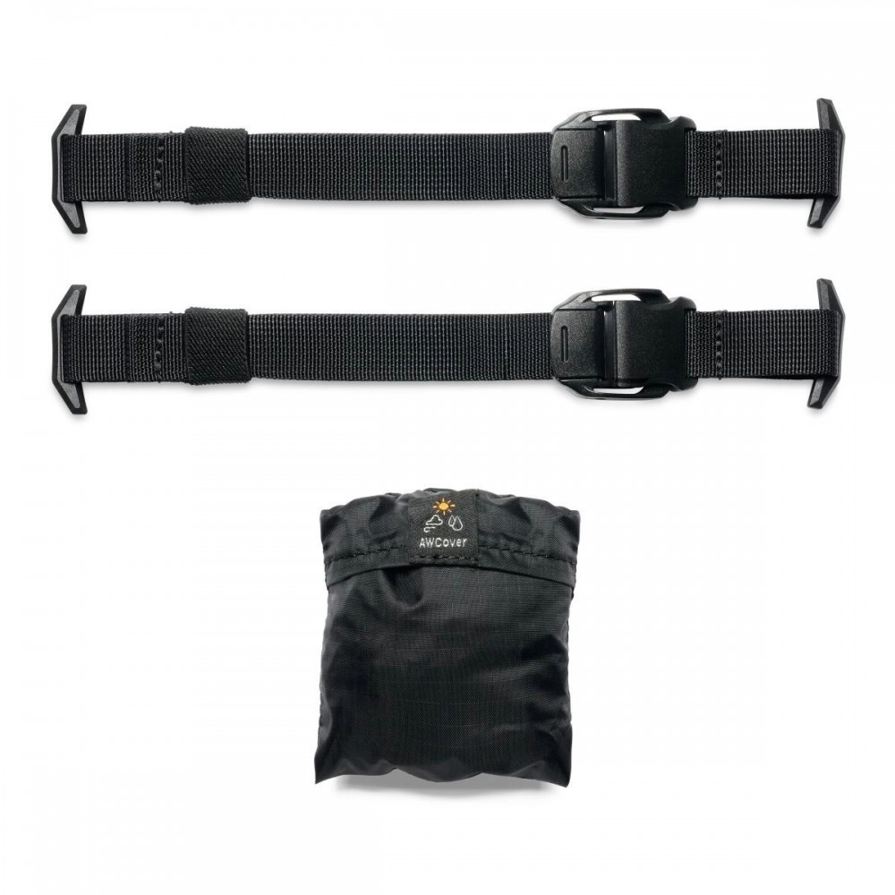 Zwei verstellbare Riemen sind im Lieferumfang enthalten, so dass Sie beispielsweise ein kleines Stativ und einen Regenschutz befestigen können.