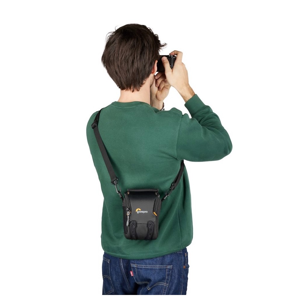 Die SH 115 bietet robusten Schutz für Kamera und Objektive, kann in größeren Taschen verstaut oder über den abnehmbaren/verstellbaren Schultergurt mit rutschfestem Patch getragen werden. Die integrierte Gürtelschlaufe und der haltbare, PVC-freie, speziell geformte Boden schützen Ihre Ausrüstung vor Feuchtigkeit, Abrieb und Stößen.