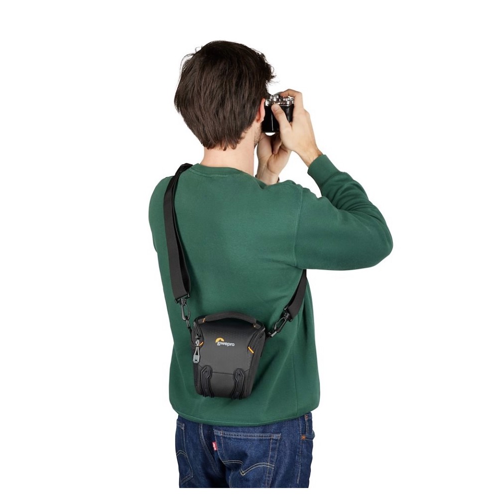 Die TLZ 20 bietet robusten Schutz für Kamera und Objektiv, kann in größeren Taschen verstaut oder über den abnehmbaren/verstellbaren Schultergurt mit rutschfestem Patch getragen werden. Die integrierte Gürtelschlaufe und der haltbare, PVC-freie, speziell geformte Boden schützen Ihre Ausrüstung vor Feuchtigkeit, Abrieb und Stößen.