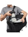Darüber hinaus ist der Hüftgurt ausziehbar und kann mit angebrachtem Zubehör, wie z. B. einer Kamera- oder Objektivtasche (separat erhältlich), auch alleine getragen werden. Diese modulare Lösung ermöglicht eine umfassende Individualisierung des Rucksacks und der übrigen ProTactic-Ausrüstung.