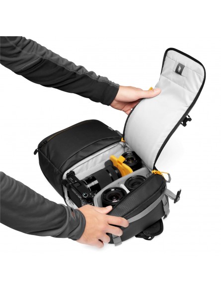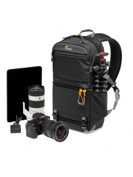 Die Slingshot Edge 250 AW wurde speziell für Reisen entwickelt, um Ihre kompakte DSLR-Ausrüstung in Reichweite zu halten und Ihr Tablet, Smartphone, Kopfhörer, Portemonnaie und andere wichtige Dinge gut zu organisieren und zu schützen. All Weather AW Cover™ und PU-beschichtete Stoffe schützen vor Schmutz, Abrieb und Feuchtigkeit, während das CradleFit™-Gerätefach das 11-Zoll-Tablet vor Stößen schützt. Erfahren Sie mehr über den Slingshot SL 250 AW III.