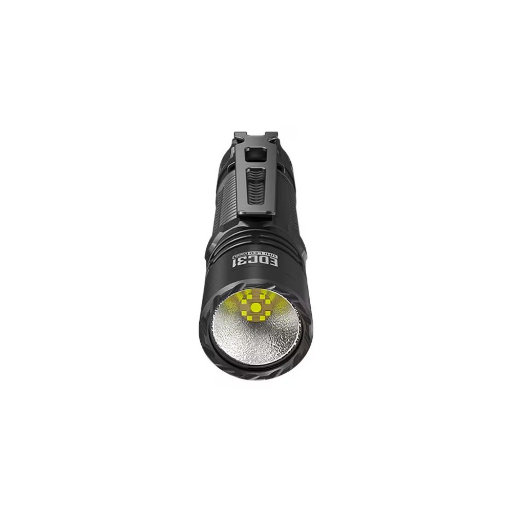 The EDC (Every Day Carry) torch features a 9-core UHi 20 MAX LED, offering a maximum light output of 3,500 lumens and a range of up to 380 metres. In its lowest operating mode, it allows continuous illumination for 57 hours.