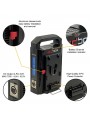 The station allows simultaneous charging of up to two batteries and UPS/Power Bank operation.