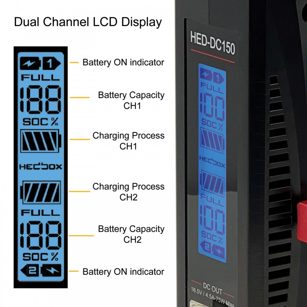 It also featuresa large and easy-to-read LCD display that indicates the charge status of the batteries.