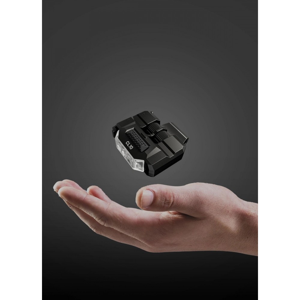 It is extremely lightweight and compact and has a clip for attaching it to equipment such as a baseball cap or tactical waistcoat.