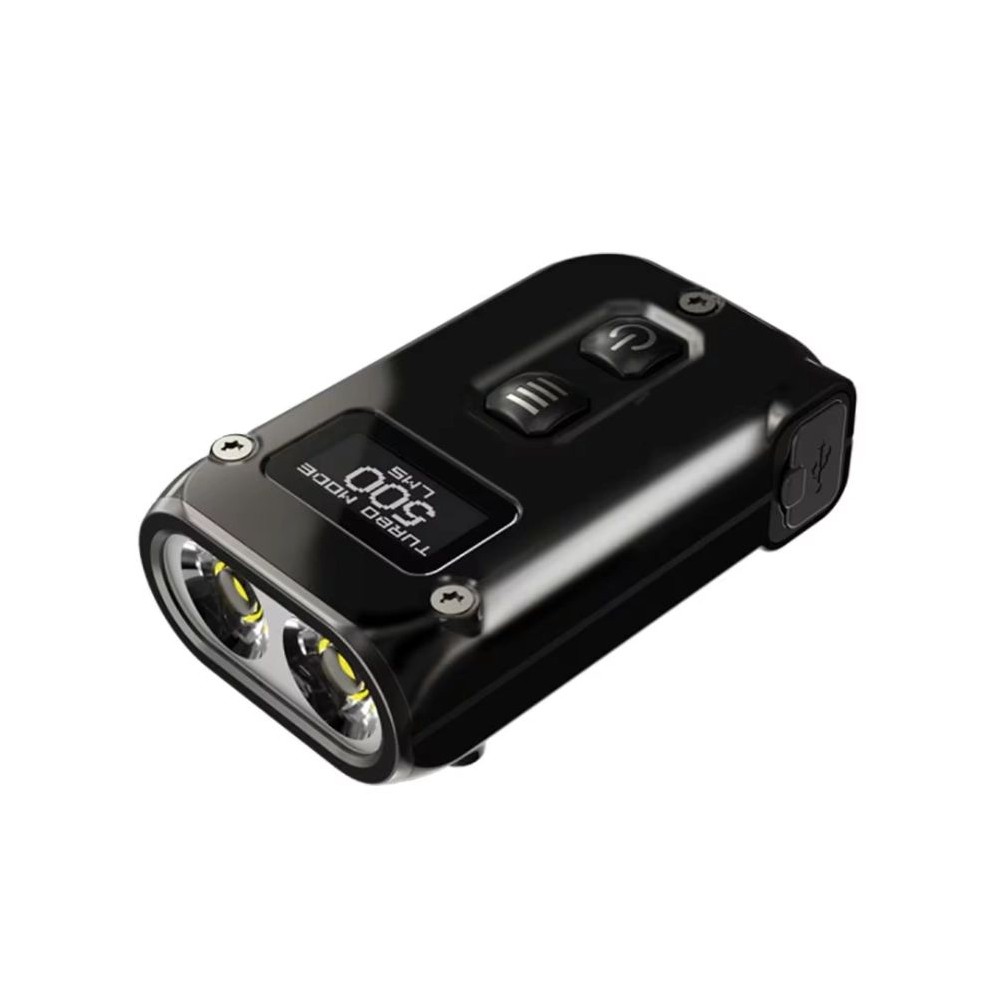 Equipped with an OLED display, the Nitecore TINI2 SS 500 lm USB-C flashlight informs about the currently used mode, charge level, battery voltage, brightness level and remaining runtime, making it easy to control the device.