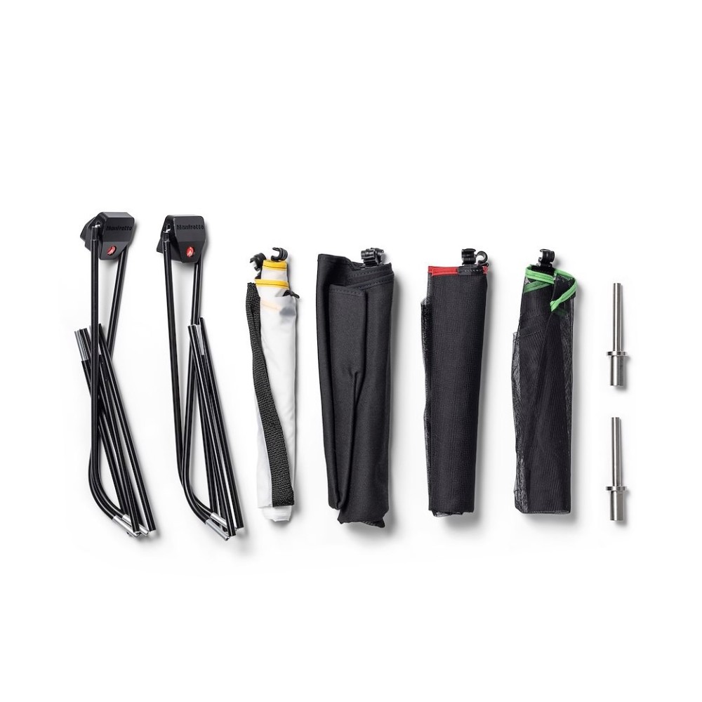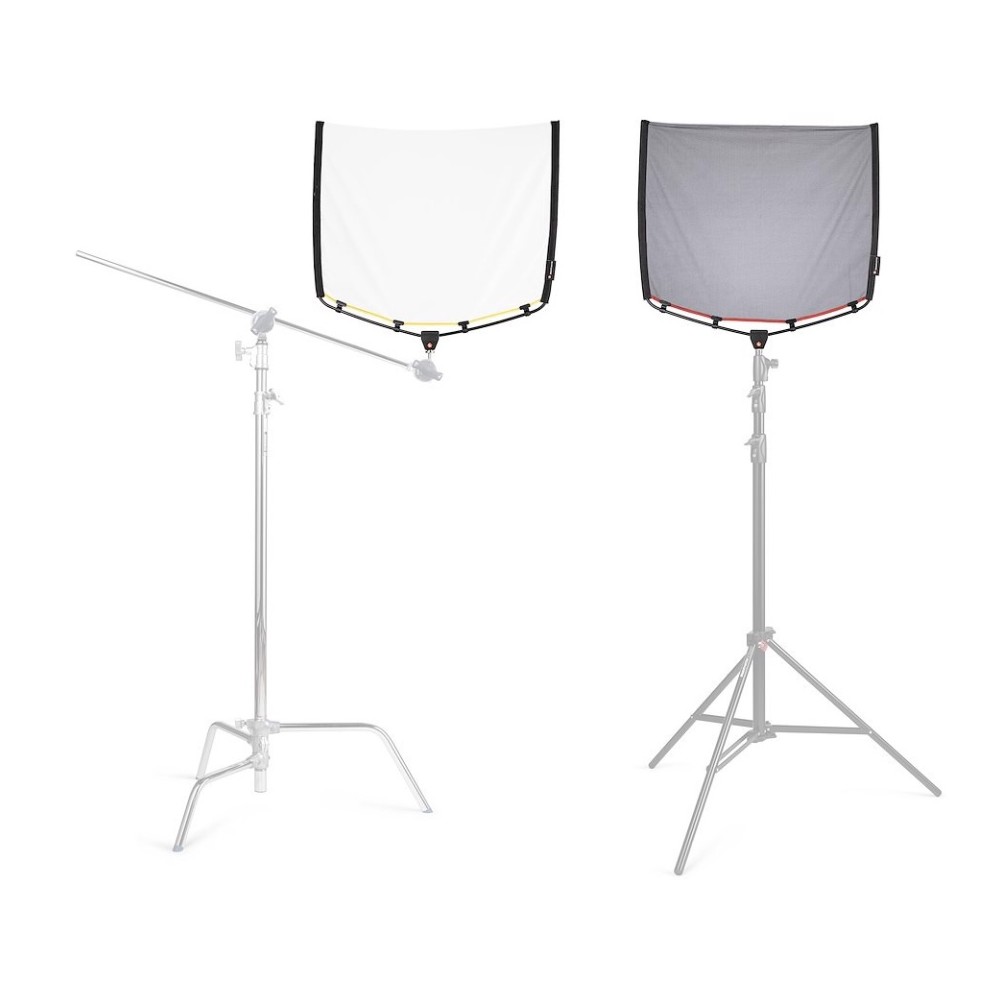 Manfrotto Rapid Flags are flag kits developed for creatives who need full control over light but also a compact form factor that can be taken anywhere and unfolded in seconds.